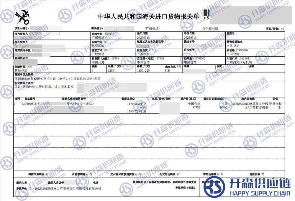 【導讀】您正在閱讀的是關于廣州機場臺灣化妝品半成品進口報關代理【清關案例】的內容,本文由開森化妝品進口報關代理小編整理編寫;