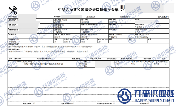 一、意大利磨皮生產(chǎn)線進(jìn)口報關(guān)代理案例詳情